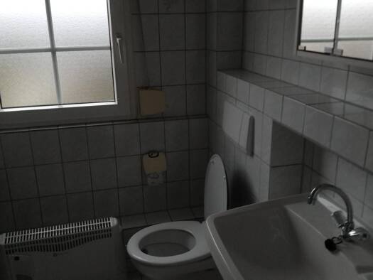 Das Zimmer ist rechts in einer 2 Zimmerwohnung. Die 2-Zimmerwohnung besitzt einen eigenen Eingang. Vom Eingangsflur sind die beiden Zimmer und das Bad erreichbar. Das rechte Zimmer hat einen 4-Plattenelektroherd mit Backofen , Dunstabzug, Kühlschrank, Spüle mit Kochendwassergerät und einem Oberschrank. Das gemeinsame Bad hat ein Waschbecken, eine Dusche und eine Toilette. Im rechten Zimmer ist ein neues Bett mit 3 Bettkästen, einem 2-türigem Kleiderschrank, 2 Regalen (rechts + links vom Fenster...