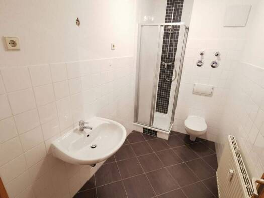 Objektbeschreibung Die Etagenwohnung im 2. Geschoss ist frisch gemalert. Das Bad hat zwei Fenster und ist mit Dusche, mit Wanne sowie mit zwei Waschbecken ausgestattet. Eine hochwertige Glasduschabtrennung und ein beleuchteter Spiegel sind für Sie schon installiert. Auf Wunsch kann gegen Aufpreis (mtl. 50€) eine Einbauküche nachgerüstet werden. Raumaufteilung Die Wohn- und Schlafräume sind mit hochwertigem Laminat ausgelegt. In der Küche und im Bad sind helle Wand- und Bodenfliesen verlegt. Zur...