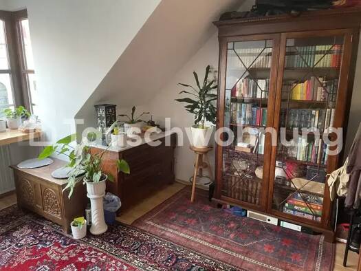 Es handelt es sich hierbei um ein Tauschangebot. (Anbieter-ID: 343831) Gemütliche und ruhig liegende Dachboden Wohnung, nähe Dultplatz/Stadtamhof - ca. 40m2 lichtdurchflutet durch Fester in Richtung West, Süd und Ost. Die Wohnung besitzt eine Waschmaschine, eine EBK mit u.a. Spülmaschine, Ofen und kann teilweise möbliert, gegen eine Ablöse, abgegeben werden. Es steht ein Fahrrad Parkplatz vor dem Eingang zur Verfügung, Parkplätze für Fahrzeuge, sind genügend auf der Straße vor dem Haus zu finde...