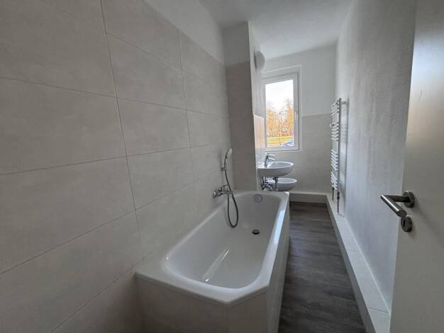 Wohnung bestehend aus 3 Zimmer, Küche mit Fenster, Bad mit Fenster, Flur und Keller.