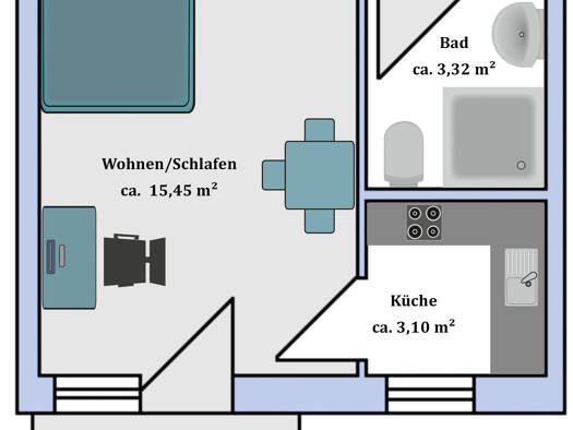 Eine Kücheneinrichtung stellt die GeWoBau nicht. Anschlüsse für Gas- oder Elektroherd sind vorhanden. Das Bad ist grundsätzlich mit Badewanne, WC und Waschbecken ausgestattet. Lampen und Spiegel müss...