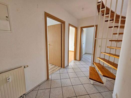 Diese 2-Zimmer-Wohnung befindet sich im 1. Obergeschoss eines Mehrfamilienhauses in Wanfried. Mit einer Wohnfläche von 52 m² bietet die Wohnung ein Schlafzimmer, ein Badezimmer sowie einen großzügigen Wohnbereich mit heller Holzoptik. Der Flur mit hellem Holzfußboden verbindet die Räume und sorgt für ein freundliches Ambiente.
