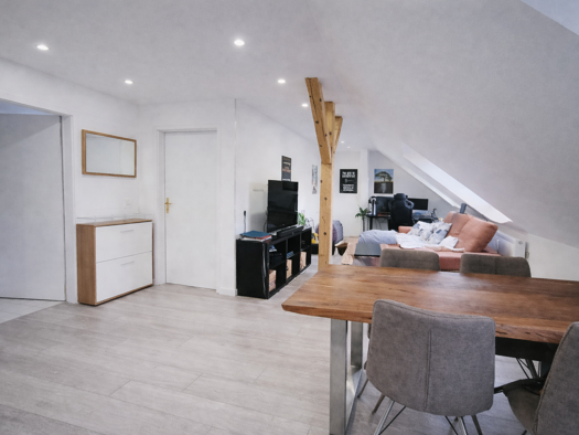 Objektdaten: • Wohnfläche: ca. 57 m² • Zimmer: 2 • Etage: Dachgeschoss • Baujahr Haus: 1953 • Ausbau/Baujahr Wohnung: 2000 • Zentrale Gasheizung (erneuert 2025) • Einbauküche vorhanden • PKW-Stellplatz • Kellerraum vorhanden Mietkonditionen: • Kaltmiete: 460 € • Stellplatz: 50 € • Nebenkosten: 260 € • Gesamtmiete: 770 € Verfügbarkeit: • Ab 01.04.2026 • Einzug ab dem 15.03.2026 möglich Bei Interesse freuen wir uns über eine Nachricht mit kurzen Angaben zur Ihrer Person.