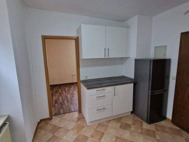 Die Wohnung befindet sich im 1. Obergeschoß eines gepflegten Mehrfamilienhauses. Sie verfügt über ein großes Wohnzimmer, eine Küche, zwei Schlafzimmer, ein Bad mit Wanne sowie eine Diele und eine Terrasse. Ausgestattet sind die Wohnräume teils mit PVC und Laminatboden, Fliesen im Badezimmer. Heizung - Nachtspeicherheizung