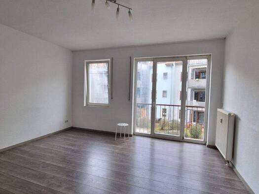 Diese gepflegte 2-Zimmer-Wohnung im 1. Obergeschoss überzeugt durch einen klaren Grundriss und eine zeitgemäße Ausstattung - ideal für Singles oder Paare, die ein komfortables Zuhause in angenehmer Wohnlage suchen. Das großzügige Wohnzimmer mit Zugang zum Balkon (Dieser wird derzeit saniert) zeigt in den begrünten Innenhof. In Flur und Wohnräumen ist ein pflegeleichter Laminatfußboden verlegt, der der Wohnung eine freundliche, wohnliche Atmosphäre verleiht. Küche und Bad sind funktional und lan...