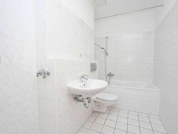 Die Wohnung ist mit Lift zu erreichen. Man kommt in eine helle, gut strukturierte Wohnung, die auch TOP für eine WG geeignet ist. Küche mit Fenster . Das innenliegende Bad hat Dusche und WC.