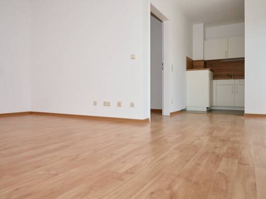 Man betritt die helle Wohnung über den zentralen Wohnungsflur. Dieser verbindet sehr praktisch die sehr hellen Wohnräume. Angefangen bei dem Wohnzimmer mit Blick zum Collm, von wo aus man das geräumi...