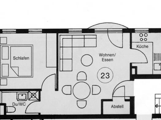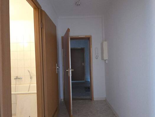 Objektbeschreibung Die Wohnung liegt im 1 OG eines Wohn- und Geschäftsgebäudes. Raumaufteilung Außergewöhnlich geschnittene 2-Raum-Wohnung mit Flur/Vorraum, Wohn-/Essbereich, Wohnküche, Bad mit Wanne...