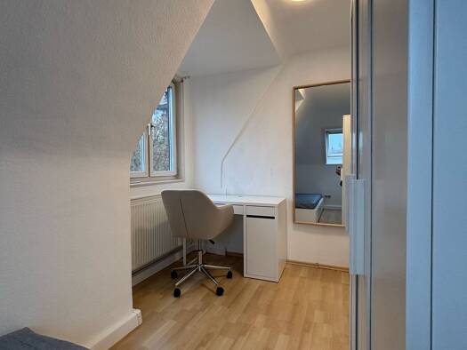In der hellen und gemütlichen Dachgeschosswohnung in der Zeppelinstraße 15 im schönen Stuttgart-West gibt es vier etwa zehn Quadratmeter große, vollständig möblierte Zimmer. Diese sind mit einem komfortablen Bett inklusive Matratze, einem praktischen Schreibtisch, einem modernen Spiegel, einem stabilen Stuhl sowie einem geräumigen Kleiderschrank ausgestattet, sodass du direkt einziehen und dich sofort wohlfühlen kannst. Alle Einrichtungsgegenstände sind neu, sodass du der erste bist welcher all...