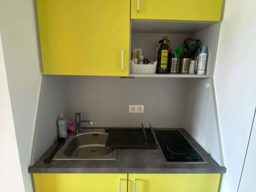 Sehr hübsches und attraktives 1-Zimmer Appartement mit Balkon im 1.OG eines Studenten-Wohnhauses. Lift ist vorhanden. Großer Waschraum, Spint im Keller Duplex-Parker (unten) in der Tiefgarage