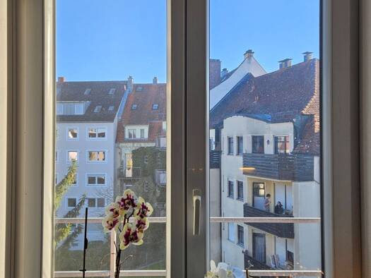 Es wird ein gemütliches, ca. 30 m² großes möbliertes Zimmer im 2. Obergeschoss einer 107 m² großen 4-Zimmer-Wohnung vermietet. Das Ambiente wird durch ein aufgeschlossenes, nettes Zuhause einer freundlichen Dame geprägt. Das renovierte Altstadthausquartier besticht durch großzügige Fensterfronten, viel Sonnenlicht und eine attraktive Aussicht. Das Zimmer ist über das gemeinschaftliche Wohnzimmer begehbar.