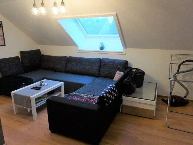 Objektbeschreibung 2-Zimmer Dachgeschoßwohnung - lichtdurchfluteter Wohnbereich. 2 große Kippfenster mit eingebauten Rollos. Geräumige Diele von der es zum Schlafzimmer, abgetrenntem Wohn-Esszimmer u...