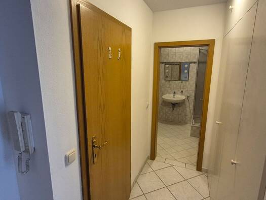 Die geräumige und helle 2,5 Zi,.-Whg., befindet sich im Erdgeschoss eines kleinen 6-Parteien-Hauses. Das Gebäude ist ein ehemaliges Bahnhofsgebäude aus dem Jahre 1925, welches im Jahre 2016 in Gänze saniert wurde. Links vom Eingangsbereich befindet sich das Badezimmer - ausgestattet mit einer Wellness-Badewannen-Duschkombination, einem WC, einem Waschbecken, einem Fenster und der Anschlussmöglichkeit für eine eigene Waschmaschine und Trockner; daneben liegend befindet sich die geräumige Wohn-Es...