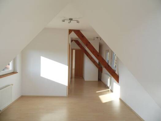 Die Wohnung befindet sich im Dachgeschoss (hat aber so gut wie keine schrägen Wände) eines Zweifamilienhauses auf einem 900 m² großen Grundstück in einer ruhigen Seitenstraße. Durch einen separaten Eingang über einen hinter dem Haus befindlichen Glasturm und einen ca. 5 x 2 m großen Balkon kommt man in die Wohnung. Die neuen Mieter sollten möglichst keine Höhenangst haben und müssen schwindelfrei sein, da die Treppen im Turm und auf dem Balkon aus Gitterrosten bestehen. Zur Not Besichtigungster...