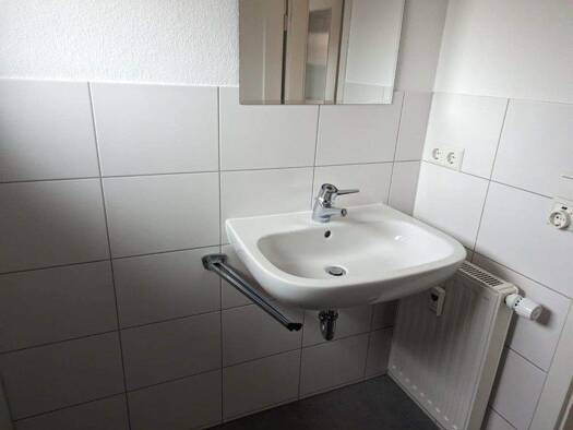 Es befinden sich neben dem Bad mit Dusche und WC ein Gäste WC sowie eine große Einbauküche mit Herd und Ceranfeld in der Wohngemeinschaft. Im Badezimmer gibt es zwei Waschbecken und eine große Dusche