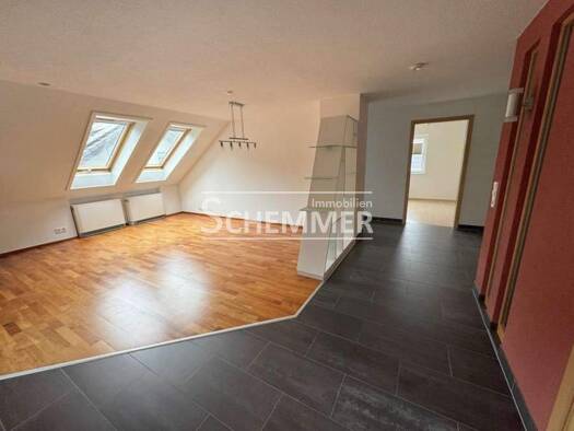 Schöne und helle 3-Zimmer-Wohnung im DG eines schönes und gepflegten 2-Familien-Hauses. Das Wohn- und Esszimmer mit stilvollem Kirschholzparkett ist hell und offen gestaltet mit leicht abgegrenzter Küche inkl. hochwertiger Einbauküche. Der sonnige Südbalkon ist komplett überdacht. Hier können sie die Ruhe genießen und dem Vogelgezwitscher lauschen. Zwei weitere Zimmer mit Laminatboden und Teppich stehen ebenfalls zur Verfügung. Das Bad ist mit einer Dusche, WC, Waschbecken und einer kleinen Bad...