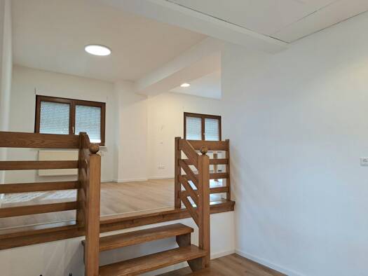 Objektbeschreibung: Gepflegtes Haus, Obergeschoss, 1,5 Zimmer, ca. 56 m². Große, offene Wohnküche mit genügend Platz für Esstisch oder Wohnzimmermöbel – Küchenanschlüsse vorhanden, Einbauküche muss vom Mieter gestellt werden. Außenliegendes Tageslichtbad (abschließbar; Bilder folgen, da noch renoviert wird). Kleiner, separater Flur. Separates Schlafzimmer, Rollläden, Zentralheizung. Besonderes Highlight: Kachelofen, der auch zum Heizen genutzt werden kann (wenn gewünscht). Miete/Kosten: Kaltmie...