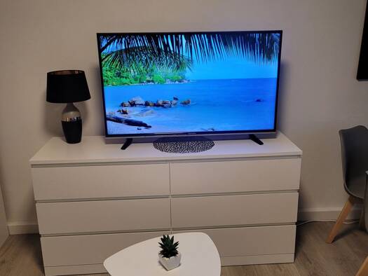 Die Wohnung befindet sich im zentralen Stadtteil Jakobsviertel. Sie ist 50 m² groß und besteht aus einem Wohnzimmer, einem Schlafzimmer, einer ausgestatteten Küche und einem Badezimmer mit Badewanne. Die Wohnung ist komplett möbliert und ausgestattet und verfügt über alles, was man zum Leben braucht: Im Schlafzimmer gibt es ein Bett, einen Nachttisch und einen Kleiderschrank, im Wohnzimmer stehen zwei Schreibtische, ein Sofa und mehrere Regale zum Abstellen von Sachen und in der Küche gibt es e...