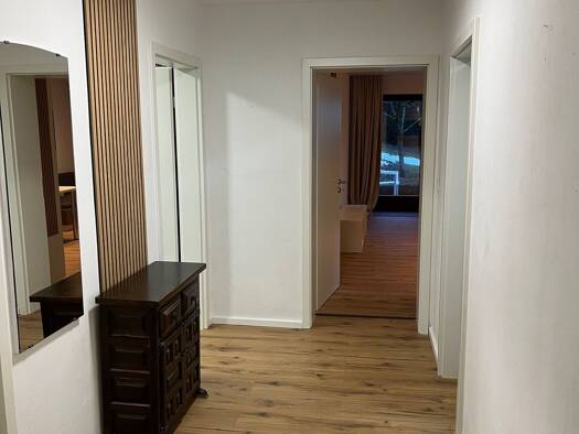 Helle, voll eingerichtete Wohnung mit Küche und Geschirr, Handtücher usw. mit Balkon und Garage. Die Immobilie befindet sich in einer verkehrsberuhigten Lage ( Stichstraße ). Einkaufsmöglichkeiten si...