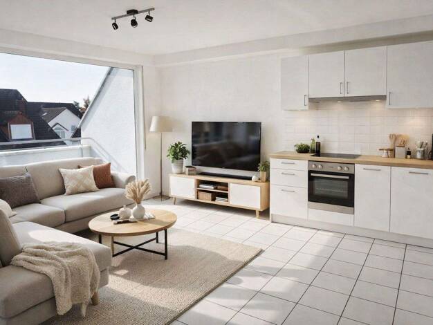 Bei dieser ansprechenden und gepflegten Immobilie handelt es sich um eine DG-Wohnung in der zweiten Etage, die ab sofort bezogen werden kann. Die Wohnung verfügt neben einem großen Wohn-/Essbereich über eine attraktive Giebelverglasung, ein Schlafzimmer sowie ein Tageslichtbad. Bei Interesse kann die Küche übernommen oder mitgenutzt werden. Die Dachfenster sind mit Außenrollläden ausgestattet und bieten in den Sommermonaten einen optimalen Hitzeschutz. Zur Wohnung gehört ein großer, abschließba...
