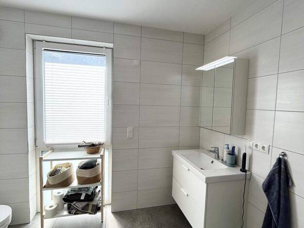 Diese moderne Obergeschosswohnung bietet auf rund 64 m² ein komfortables Zuhause mit einer gelungenen Mischung aus Helligkeit, Funktionalität und ansprechender Gestaltung. Der offen gehaltene Wohn- und Kochbereich wird durch große Fenster mit viel Tageslicht versorgt und bietet ausreichend Platz für eine gemütliche Wohnlandschaft sowie einen Esstisch. Die hochwertig ausgestattete Einbauküche fügt sich harmonisch in das Gesamtbild ein. Vom Wohnbereich aus gelangen Sie zudem direkt auf den Balkon...