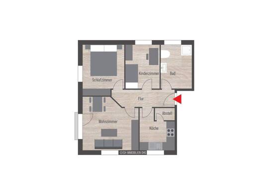 2-Zimmer-Wohnung, Diese Wohnung bietet auf 57 qm ein helles Wohnzimmer, ein geräuminges Schlafzimmmer, Einbauküche mit Geschirspülmaschine, modernes Bad mit begebarer Dusche und einen 6 qm Balkon, ( ...
