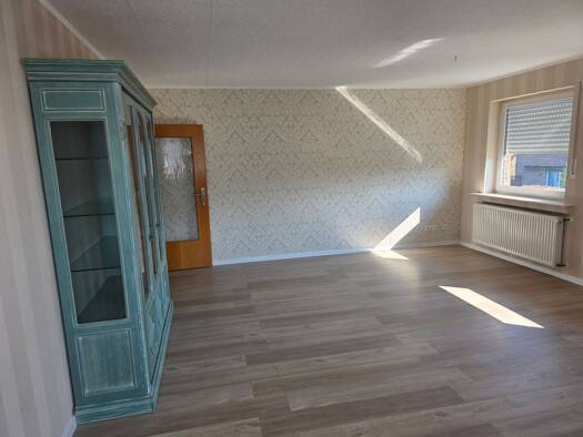 Gesamtmiete 860,- EUR (Miete 615,- EUR zzgl. Nebenkostenvorauszahlung 215,- EUR HK enth., zzgl. Stellplatz 30,-EUR) Diese gepflegte Wohnung mit einer Wohnfläche von ca. 61,44 m² befindet sich im Erdgeschoss eines Zweifamilienhauses. Das Objekt wurde im Jahr 1957 errichtet, ca. 1977 umgebaut und im Jahr 2024 modernisiert. Zur Verfügung steht ein großzügiger Wohnbereich. Von hieraus gelangen Sie auf die schöne Terrasse mit Garten, der zum Verweilen einlädt. Die separate Küche mit angrenzendem Ess...