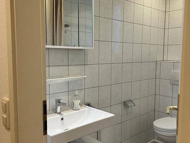 Vermietet wird eine 45 qm große 2 Zimmer Wohnung. Geeignet für Einzelperson oder Paar. SCHLAFZIMMER: Ein Schlafzimmer mit konfortablem Boxspring Doppelbett. Viel Stauraum durch großen Schrank und Kommode sowie Arbeitsmöglichkeit durch kleinen Schreibtisch. Bettwäsche etc. vorhanden. KÜCHE: In der Wohnküche ist ein kleiner Essbereich und eine vollausgestatte Einbauküche mit allen Elektrogeräten (Spülmaschine, Mikrowelle, Kaffeemaschine etc.). Haushaltswaren wie z.B. Geschirr, Töpfe/Pfannen, Best...
