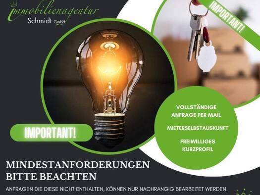 2‑Zimmer‑Wohnung in ruhiger Lage – 60 m² Objektbeschreibung: Zur Vermietung steht eine gepflegte und gut geschnittene 2‑Zimmer‑Wohnung mit einer Wohnfläche von 60m². Die Wohnung befindet sich einer ruhigen Wohnlage im Dachgeschoss im zwei Stockigem Hauses. Ausstattung & Merkmale 2 Zimmer, Küche, Bad Ruhige Wohnlage Helle Räume und praktischer Grundriss Gepflegtes Mehrfamilienhaus Lage Bäcker: 100 m Bahnhof: 400 m – ideal für Pendler Mietkonditionen Kaltmiete: 450 € Nebenkosten: 300 € (Heizung, ...