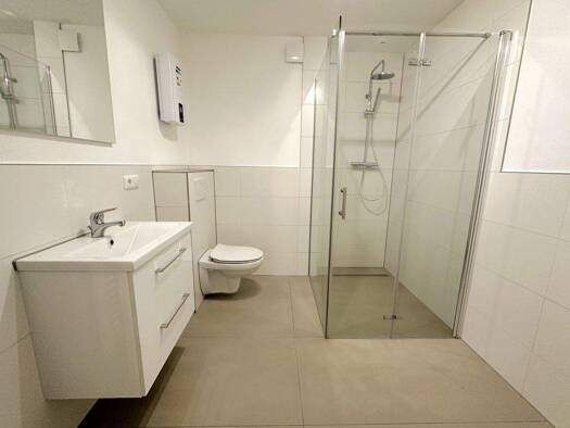 Das Gebäude grenzt direkt an die Stallungen des Brauerhofs und wurde in den Jahren 2022 und 2023 umfassend kernsaniert. Erhalten geblieben sind lediglich die Außenwände; im Inneren handelt es sich um einen vollständigen Neubau. Die Wohnung ist mit modernen Kunststofffenstern und Isolierverglasung ausgestattet. Die Beheizung erfolgt über eine energieeffiziente Wärmepumpe in Kombination mit einer Fußbodenheizung. Die Bäder verfügen jeweils über ein Fenster, eine Dusche sowie einen Waschmaschinena...