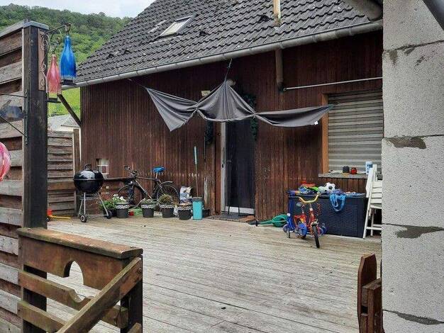 Auf der trarbacher Seite finden Sie das ruhig gelegene Mietshaus. Nicht weit entfernt ist der historische Ortskern und auf der trabener Seite findet man alle wichtigen Einkaufsmöglichkeiten für den täglichen Bedarf, Busbahnhof und Moselbahnanschluss. Wohnzimmer mit offener Küche und Zugang zum ausgebautem Spitzboden, Schlafzimmer, Bad, Flur