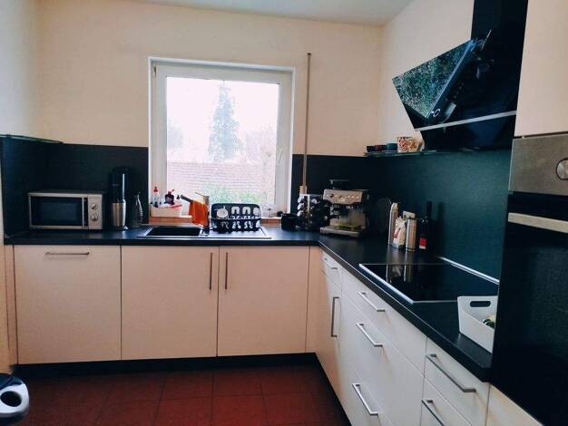 Diese Wohnung befindet sich im Dachgeschoss eines Mehrfamilienhauses nicht weit vom kleinen Markt entfernt. Sie besteht aus einem Wohn-Esszimmer, zwei Schlafzimmern, einer Küche mit einer Einbauküche, die im Mietpreis enthalten ist, einem renoviertem Badezimmer mit Dusche und einem kleinen Balkon. Zur Wohnung gehört außerdem ein Raum im Keller; im Waschraum können Waschmaschine und Trockner angeschlossen werden. Der Garten kann von allen Bewohnern des Hauses genutzt werden.