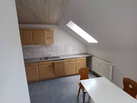 Die komplett ausgestattete Wohnung befindet sich im Dachgeschoss eines gepflegten kleinen Mehrfamilienhauses mit 5 Mietparteien. Sie können einfach einziehen. Es ist alles bereits vorhanden. Ein komfortables Bett, Schränke, eine Sitzgruppe zum Wohnen, Esstisch mit 2 Stühlen, eine Küche mit Geschirr, ein Fernseher sowie ein Wannenbad mit Fenster. Die Mindestmietzeit beträgt 1 Jahr. Die Wohnung ist ideal für Berufstätige (Pendler) oder Studenten usw.