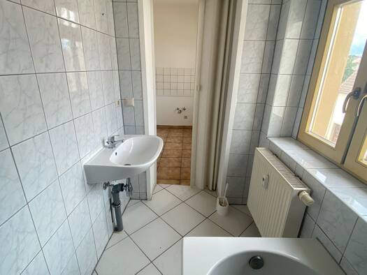 Diese helle 3-Zimmerwohnung befindet sich im Dachgeschoss eines gepflegten Mehrfamilienhauses. In den Wohnräumen wurde Laminatboden verlegt, der für eine warme und wohnliche Atmosphäre sorgt. Die Küche ist mit einem Laminatboden in Fliesenoptik ausgestattet und verfügt über einen praktischen Fliesenspiegel. Das Badezimmer ist vollständig gefliest und bietet sowohl eine Dusche als auch eine Badewanne – ideal für entspannte Stunden oder die schnelle Erfrischung zwischendurch. Ein WC sowie ein Was...