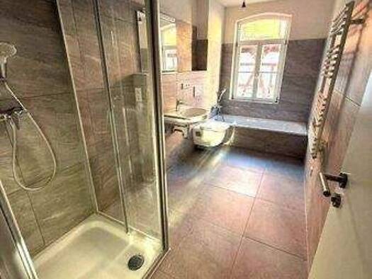Die 3-Zimmer-Wohnung befindet sich im 1.Obergeschoss eines im Jahr 2018 kernsanierten Mehrfamilienhauses. Die Wohnräume sind mit hochwertigen Vinyl-Designplanken ausgelegt. Das Bad ist mit einer modernen beige-grauen Fliese gefliest. Die vorhandene Einbauküche ist mit Geschirrspülmaschine, Backofen, Kühlschrank und Cerankochfeld ausgestattet. Das geräumige Tageslichtbad ist mit einem Waschbecken und einer Dusche versehen.
