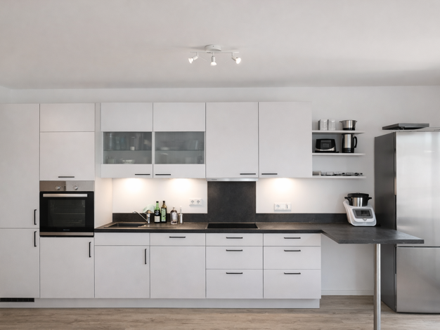 Unsere Immobilie befindet sich in der Nähe von Bitburg in einem modernen Mehrfamilienhaus. Auf rund 112m² Wohnfläche bietet sie ein komfortables Wohnambiente für Paare oder kleine Familien. Der großzügige Wohnbereich verfügt über große Fensterfronten und Zugang zum sonnigen Balkon. Das Badezimmer überzeugt mit einer modernen Ausstattung ebenerdiger Dusche.