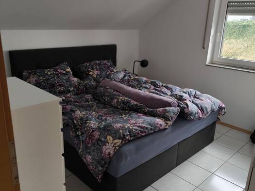 Objektbeschreibung Sonnige, gut geschnittene frisch renovierte Dachgeschosswohnung mit gemütlichen Dachschrägen in einem freistehenden 3-Familienhaus in ruhiger, grüner Umgebung mit Südbalkon, von dem der Blick auf den gepflegten großen Garten geht, wo es ruhige Plätze zum Entspannen gibt. Es wurde ein neuer Laminatboden gelegt, die Wände frisch gestrichen, alles gründlich gereinigt und die integrierten Einbauleuchten auf neueste LED Technik (dimmbar) umgestellt. Die Angaben zur Höhe der Nebenk...