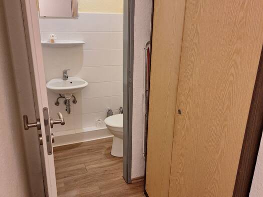 Es handelt sich um ein 1-Zimmer-Apartment im Obergeschoss, bestehend aus einem großen Wohn-/Schlafraum, der mit Linoleum ausgelegt ist. Bitte schauen Sie sich den Grundriss der Wohnung an. Im Flur be...