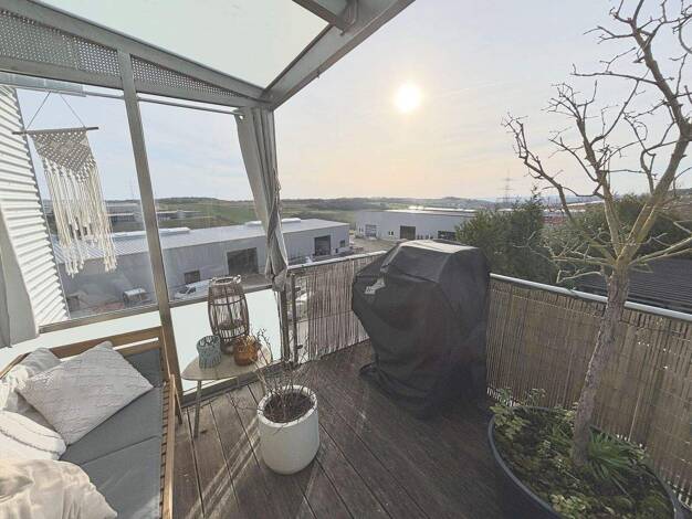 Dieses lichtdurchflutete Penthouse bietet auf gut 100 qm eine hochwertige Ausstattung und verfügt über eine Fußbodenheizung. Zum Wohn-Essbereich mit offener Küche und direktem Zugang zur umlaufenden ...