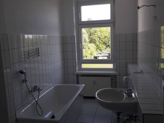 Objektbeschreibung Wir bieten eine tolle Zweizimmerwohnung mit großem Wannenbad mit Fenster und größer Küche. Raumaufteilung Zwei Räume zur Straße hin, Küche und Bad zum Hof. Moderne Böden, Bad kompl...