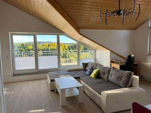 Willkommen in Ihrem neuen Freiraum-Penthouse: Hier haben Sie viel Platz und einen freien Blick vom Lemberg über den Dreifaltigkeitsberg bis zum Klippeneck. Dieses Panorama genießen Sie 365 Tage im Ja...