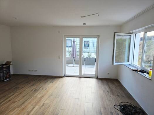 Die Wohnung befindet sich in einem 4-Familienhaus am Ende einer Sackgasse in einem Neubaugebiet, Saarbrücken-St. Arnual. Sie ist ruhig gelegen mit schönem Ausblick. Aufteilung: Eingangsbereich mit kl...