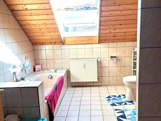 Diese attraktive, gepflegte DG-Wohnung in der ersten Etage kann zum 01.04.2026 bezogen werden. Die fünf einladende Zimmer können Sie nach Ihrem persönlichen Geschmack einrichten. Falls gewünscht kann die individuelle Einbauküche übernommen werden. Die Küche ist in einem neuwertigen Zustand. Auf dem zum Haus dazugehörigen Stellplatz können Sie Ihr Auto bequem parken. Ein Kellerraum bietet ausreichend Stauraum für eingelagerte Gegenstände.