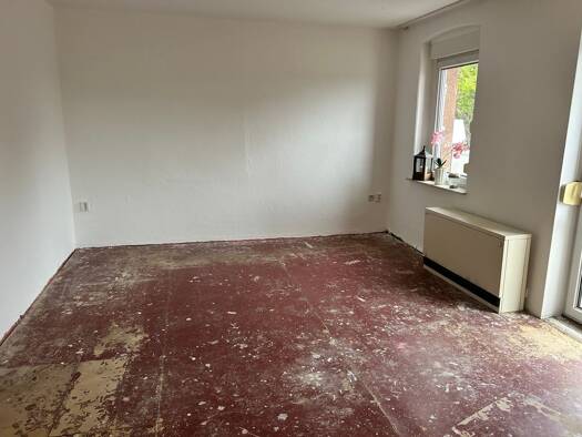 Ruhige kleine Erdgeschosswohnung im Mehrfamilienhaus, bestehend aus Wohnzimmer, Küche, Bad und Diele. Kellerabstellraum und Parkplatz vor dem Haus.