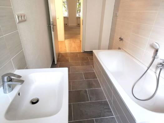 Die Wohnung befindet sich im Dachgeschoss eines sanierten Altbaus im Zentrum von Eilenburg. Das schöne Tageslichtbad verfügt über einen Waschmaschinenanschluss und eine Badewanne. Gesellige Abende kö...
