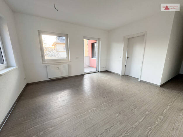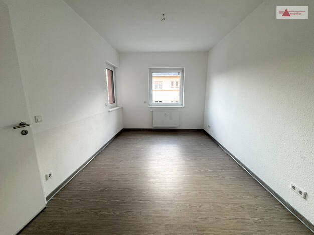 Ab sofort wartet diese tolle 3-Raum-Wohnung auf neue Mieter. Die Wohnung befindet sich im 1. Obergeschoss eines sanierten Mehrfamilienhauses und wurde komplett renoviert. Die Böden sind mit modernem Laminatboden ausgestattet, das Bad ist gefliest. Über den zentralen Flur gelangen Sie in das Tageslichtbad mit Wanne und Waschmaschinenanschluss, die Küche und das große Wohnzimmer. An die Küche schließt sich das 2. Schlaf- bzw- ein Arbeitszimmer an, über das Wohnzimmer erreichen sie das ruhige Schl...