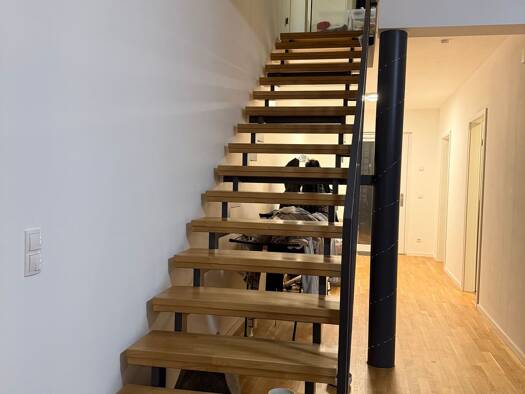 Die angebote Wohnung befindet sich in einem Mehrfamilienhaus mit fünf Mietparteien im 1.Obergeschoss des Hauses. Das Objekt verfügt über 2 Etagen und das Dachgeschoss.