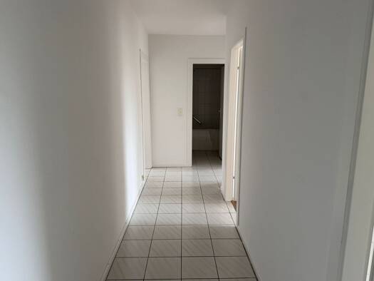 Helle 3 Zimmer Wohnung die nach hinten raus liegt. Der Fussboden ist mit hellem Laminat belegt und alle Wände sind weiss gestrichen. Das zweite Schlafzimmer ist mit grauem Teppich belegt. - Grosser überdachte Süd Loggia - Laminat in allen Wohnräumen sowie dem Flur. - Licht durchflutet durch eine große Fensterfront im Wohnzimmer. - moderne Einbauküche - hell gefliestes Vollbad mit Badewanne - Getrenntes Gäste WC - Kellerraum / Waschraum