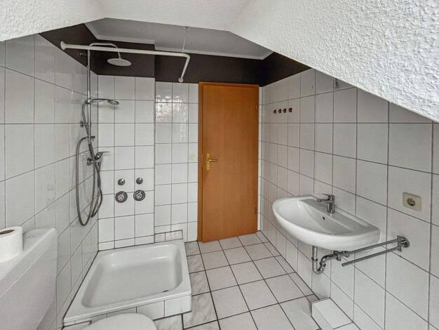 Über den großzügigen Eingangsbereich betreten Sie Ihre neue renovierte Wohnung mit eigenem Eingang. In der hellen Wohnküche mit der neuen, hochwertigen Einbauküche und dem Designfußboden mit Holzstru...