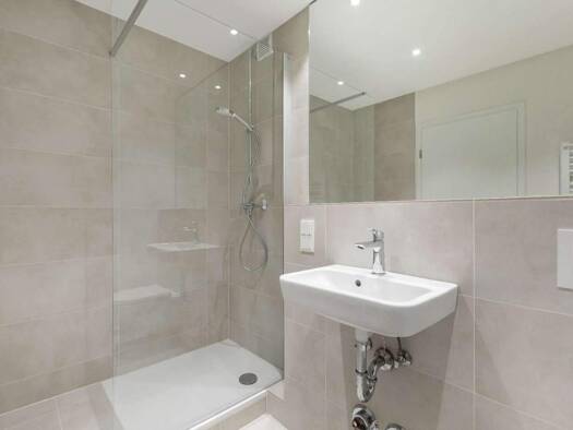 Die Wohnung liegt im 1. OG eines 5 Partien Mietshauses. Das helle Duschbad verfügt über ein Fenster. Die Waschmaschine findet in der Küche mit Einbaumöbeln ihren Platz - oder Sie nutzen den Münz Wasc...